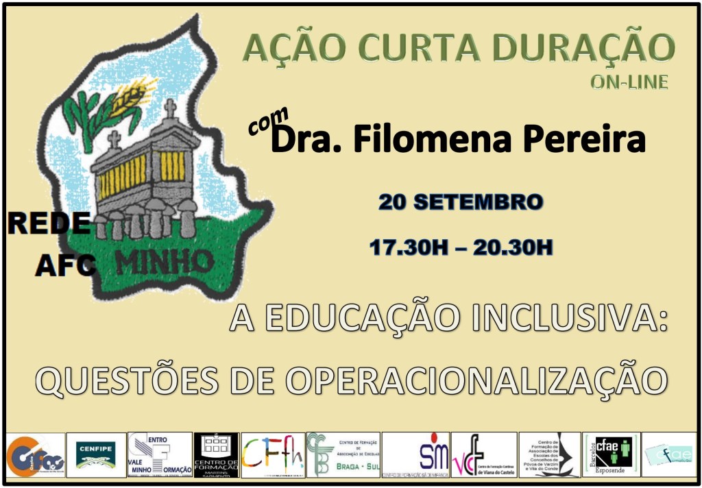 A Rede Minho AFC, que este CFAE-PVVC integra, irá organizar a Ação de Curta Duração sobre “Educação Inclusiva: Questões de Operacionalização”, que será dinamizada pela Dra. Filomena Pereira, no dia 20 de setembro, das 17.30h às 20.30h.