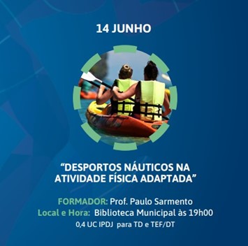 Inserida no Ciclo de Ações de Formação Atividade Física e Desporto, a Câmara Municipal de Vila do Conde organiza a ação de formação com o tema “Desportos Náuticos na Atividade Física Adaptada”, no próximo dia 14 de junho, 4ª feira, entre as 19:00 e as 21:00 na Sala Polivalente da Biblioteca Municipal de Vila do Conde , e será ministrada pelo Prof. Paulo Sarmento, coordenador do Centro Formação Desporto Escolar de Atividades Náuticas Cego do Maio.