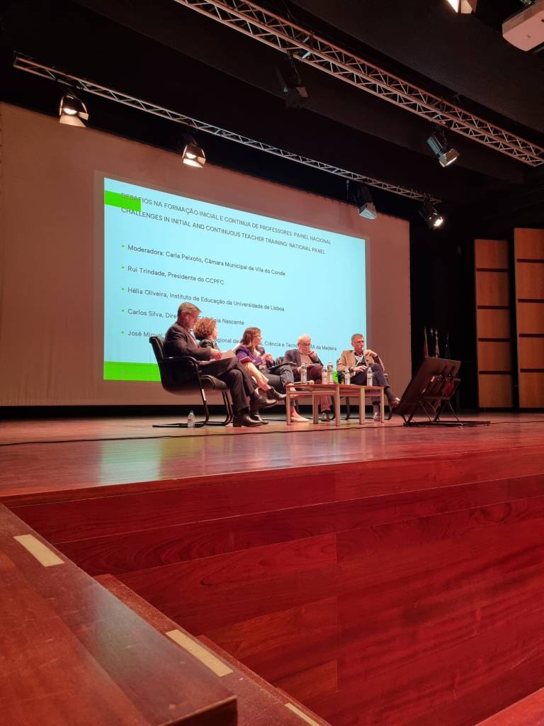 A sessão de abertura do seminário proporcionou uma análise sobre a importância da formação contínua de professores e a colaboração entre municípios e centros de formação em Portugal.